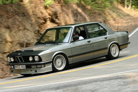 Внешне машину легко отличить от обычной Е28 по переднему и задним спойлерам Alpina,улучшевшим аэродинамику, а также фирменным многоспицевым колёсным дискам с резиной размерностью 205/55 спереди и 225/50 сзади.