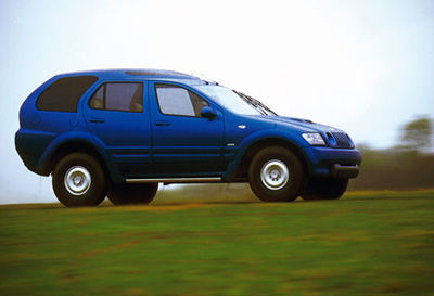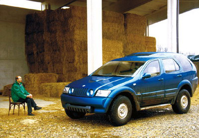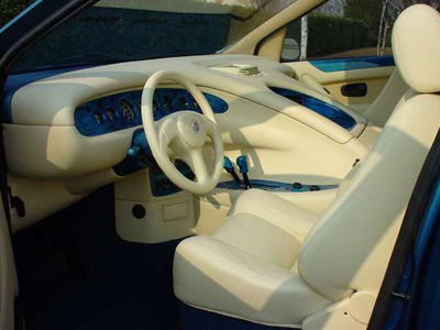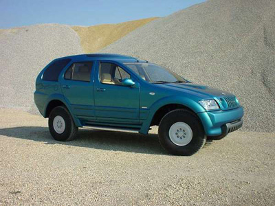 Разгон Coggiola T.Rex нельзя назвать очень быстрым, но он весьма впечатляет. Взревев при утопленной в пол педали газа, автомобиль не спеша, степенно начинает движение. Покачиваясь на неровностях, разрывая своим гигантским кузовом толщу встречного воздушного потока, машина весьма быстро развивает 100 км/ч, а затем на автостраде стрелка спидометра подкрадывается к отметке 140 км/ч. Ощущения? Если откровенно, 140 за рулем T.Rex кажутся более сумасшедшей скоростью, чем 250 за рулем Ferrari! Разумеется, создатели автомобиля понимают, что с дизелем, даже таким большим, T.Rex не поставит рекордов по динамике, поэтому при изготовлении следующих экземпляров будет применен 5-6-литровый бензиновый V8 мощностью в 300 с лишним сил (либо от General Motors, либо даже от Mercedes-AMG)! Только все-таки инженеры Coggiola беспокоятся насчет того, как их "хаммерозавр" будет ездить на скоростях, превышающих 200 км/ч... Уже сейчас подвеска и тормоза Hummer испытывают предельные нагрузки из-за тяжести кузова, так что, вероятно, потребуется доработка шасси... Зато мягкая, "убаюкивающая" подвеска и неторопливый, однако очень тяговитый турбодизель великолепны, как только сворачиваешь с шоссе на пересеченную местность. Как и Hummer, T.Rex практически не знает преград. Шел сильный дождь, но, несмотря на это, мы упорно забирались в горы по узкой извилистой дорожке из мокрых камней и разбухшей от воды глины. Посвистывая наддувом и срубая бампером грунт там, где дорожка была слишком узкой, динозавр карабкался без малейших усилий. Хорошо, что нижняя часть бампера сделана из сверхударопрочного алюминия: при езде по горной дорожке это очень помогает.